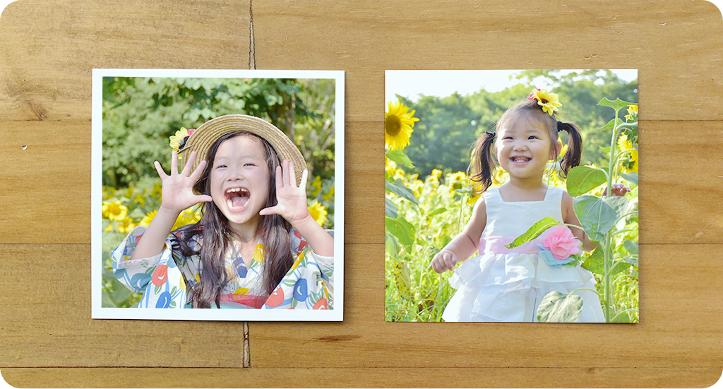 ましかくプリントもL判プリントと同じ「銀塩印刷方式」のため、街の写真屋さんと同様の仕上がりになります。